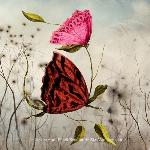 This Aquarius New Moon/Solar Eclipse (Feb. 17, 2026, 4:01 am PST, 28.49 Aquarius) is on the Sabian symbol 29 Aquarius: A butterfly emerging from a chrysalis, and is square Uranus, with all the exciting unpredictability that suggests. We’ll find the Saturn side of our Aquarian selves affixed to an immovable surface, daring the world to unseat us. And near at hand will be our Uranian natures, poking us with lightning bolts, determined to propel us out of the chrysalis, and onto new and unexpected paths.