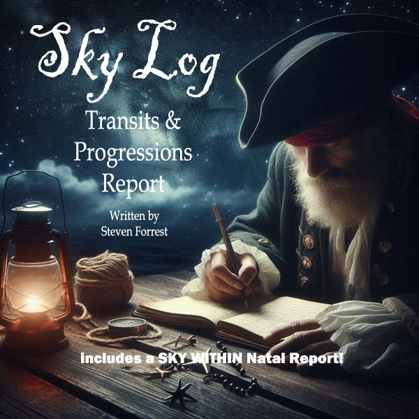 SKY LOG Transits & Progressions – Which challenges, adventures, and opportunities await you? In “Sky Log,” astrologer Steven Forrest guides you through astrological landscape that lies ahead. Your approximately 50 page, 1 YEAR REPORT is divided into three comprehensive sections: The Invitation, The Means, and The Details. Each of these sections is organized chronologically to make the report more logical, intuitive, and usable.